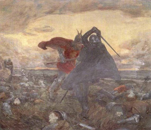 Als Artus Mordred in Winchester belagerte, entkam sein Neffe heimlich nach Cornwall. Artus verfolgte seinen Neffen und traf ihn bei Camlann (Camblam, Camelford, Camble oder die Ebene von Salisbury, je nach Autor).