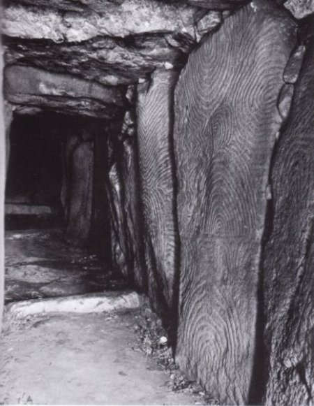 Inneres der Grabpassage mit Spiral schnitzereien auf den Steinwänden.