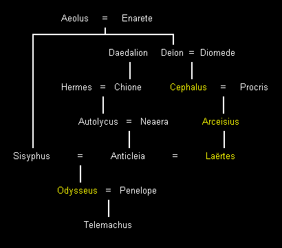 In späteren Mythen war Odysseus der Sohn des Sisyphos, König von Korinth. Sisyphos vergewaltigte Antikleia, die Tochter des Autolykos, als Rache für den Diebstahl seines Viehs durch Autolykos.