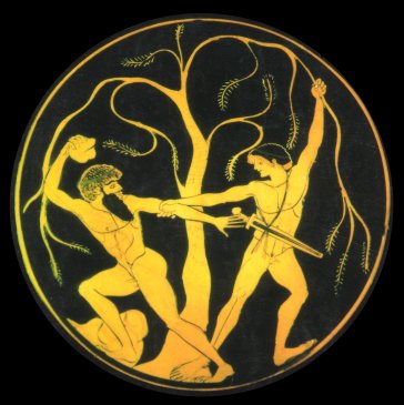 Ein Räuber namens Periphetes hatte die Angewohnheit, seinen Opfern den Kopf einzuschlagen. Theseus entwaffnete ihn und tötete ihn mit derselben Keule, die Periphetes an vielen seiner Opfer verwendet hatte.