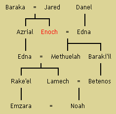 Das Buch der Jubiläen berichtet von ähnlichen Ereignissen wie die in den rabbinischen Legenden in den Legenden der Juden geschilderten. Im Buch der Jubiläen war Enoch der Sohn Jareds und Bârakas, der Tochter Râsûujâls. Seine Frau war Ednî, die Tochter Danels, und Enoch wurde der Vater Methusalahs. Anders als die Genesis hat uns das Buch der Jubiläen die Namen der Mütter, Ehefrauen und manchmal der Töchter der Patriarchen überliefert.