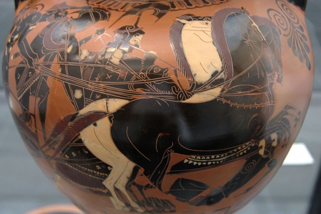 Die Zwillinge lenkten den Streitwagen ihres Vaters, der von vier goldgezäumten, feueratmenden Hengsten namens Aithon (Feuer), Phlogios (Flamme), Konabos (Aufruhr) und Phobos (Furcht) gezogen wurde. Es ist bemerkenswert, dass eines der Pferde denselben Namen wie der junge Gott trägt; dies unterstreicht die Bedeutung der Furcht als Kampftaktik.