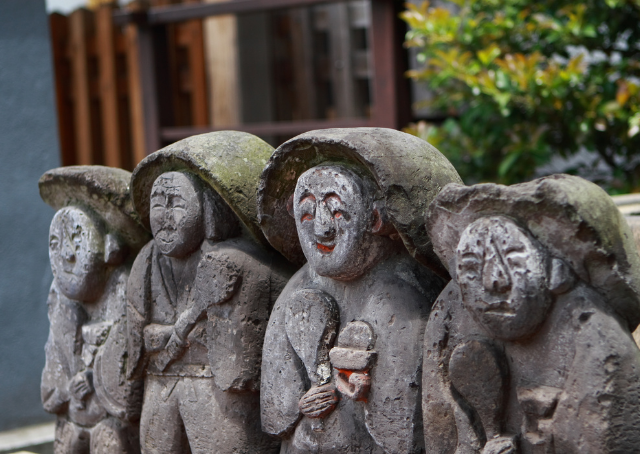Daikokuten war ein Gott des Glücks und des Reichtums. Er wurde aus anderen Mythologien übernommen, jedoch in Japan zu einem freudigen, glücklichen und großzügigen Gott umgewandelt. In seiner frühen Geschichte wurde er möglicherweise als rachsüchtig dargestellt, doch später erschien er lächelnd und glücklich. Er trug einen Beutel sowie einen Holzhammer.