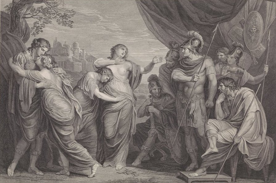 Eteokles, Polyneikes und Iokaste - Eine Illustration der schicksalhaften Begegnung zwischen den beiden Brüdern und ihrer Mutter Iokaste
