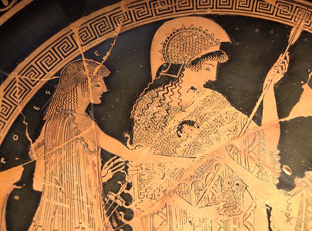 Die Göttin Athena erscheint sodann als “deus ex machina” und rät Theseus, einen Eid ewiger Freundschaft mit Argos zu schließen. Zugleich ermutigt sie die Söhne der gefallenen argivischen Feldherren, Theben für den Tod ihrer Eltern Rache zu nehmen.