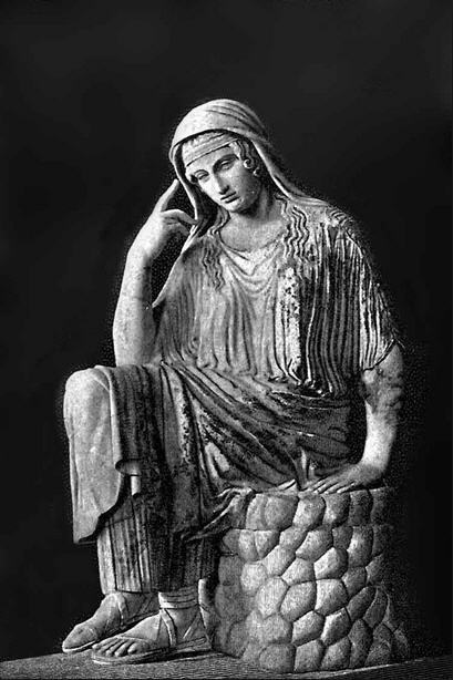 Nach einem Jahr des Festens und Trinkens auf Kirkes Insel brachen die Griechen erneut auf und erreichten den westlichen Rand der Welt. Odysseus brachte den Toten ein Opfer dar und rief den Geist des alten Propheten Teiresias herauf, um sich beraten zu lassen, sowie die Geister mehrerer anderer berühmter Männer und Frauen und den seiner eigenen Mutter, die aus Kummer über seine lange Abwesenheit gestorben war und ihm beunruhigende Neuigkeiten über die Lage in seinem eigenen Haus überbrachte.