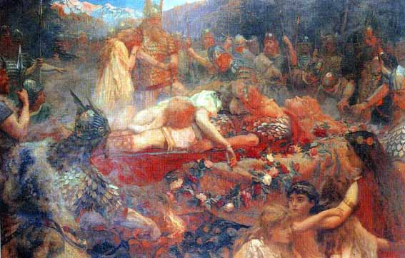 Bei Sigurds Leichenfeier jedoch litt Brynhild unter ihrer eigenen Trauer um den Helden. Dann offenbarte Brynhild ihrem Gemahl die Wahrheit, dass Sigurd niemals seinen Eid gegenüber Gunnar gebrochen noch sich jemals an ihr vergangen hatte.