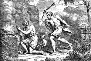 - Grendel, das böse Monster, hat im Gedicht eine Vorgeschichte. Diese steht in Zusammenhang mit Kain und Abel: “Für die Tötung Abels hatte der ewige Herr einen Preis gefordert: Kain hatte nichts davon, dass er den Mord beging, weil der Allmächtige ihn zum Geächteten machte, und aus dem Fluch seiner Verbannung entsprangen Oger und Elfen und böse Geister und auch die Riesen.”