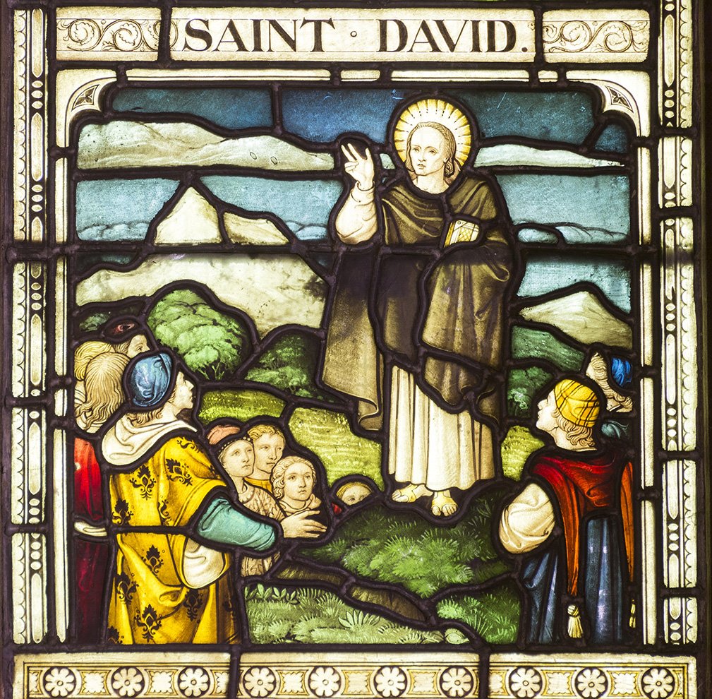 Diese historische Figur, gemeinhin als Sankt David bezeichnet, ist der Schutzpatron von Wales. Er war während eines großen Teils des sechsten Jahrhunderts in Wales tätig. Er war Bischof von Menevia, oder Mynyw, in Westwales. Neben der Gründung zahlreicher religiöser Gemeinschaften in weiten Teilen Südwales reiste er auch nach Dumnonia und sogar in die Bretagne.