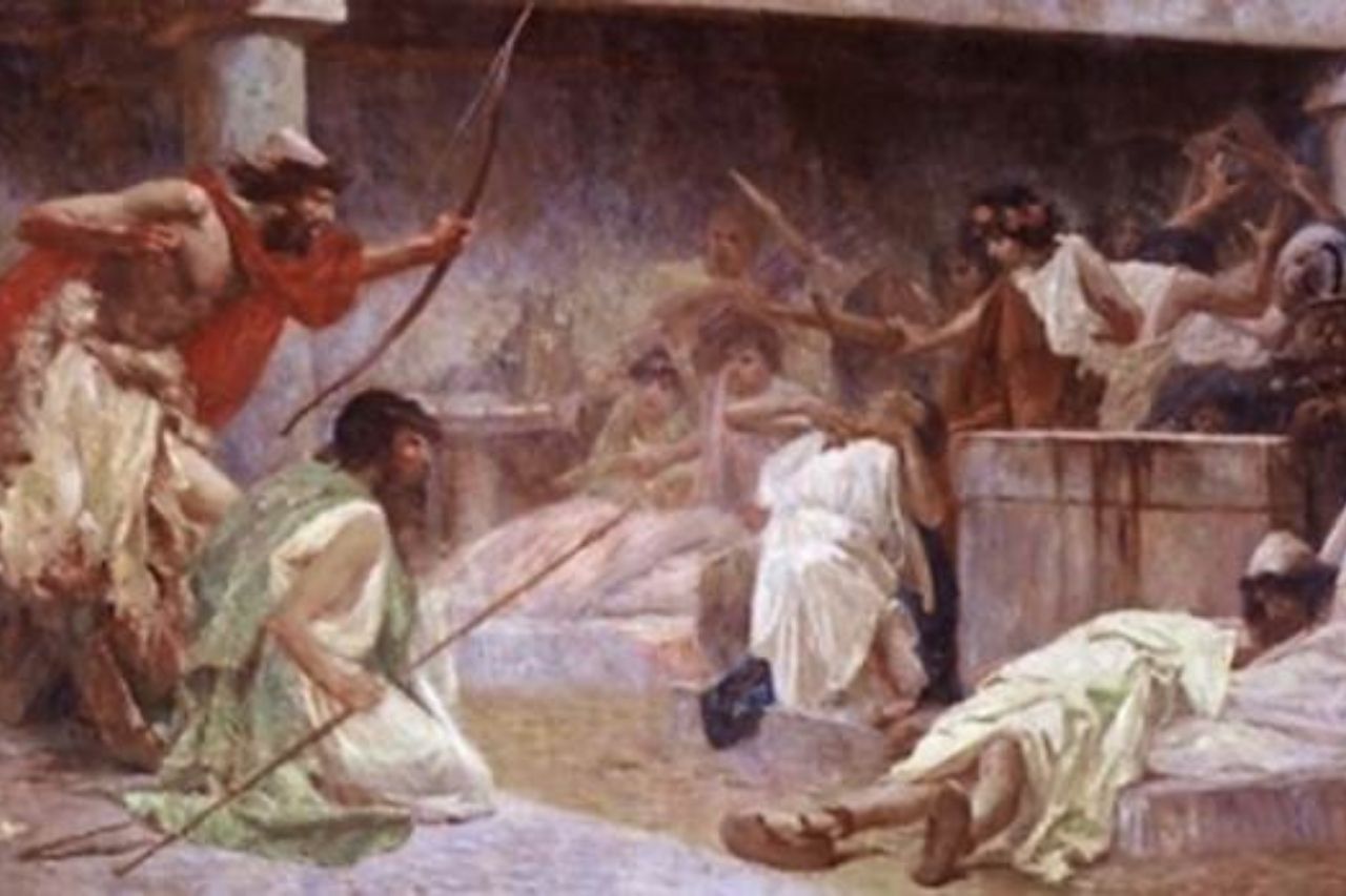 Telemachos und Eumaios, Odysseus’ treuer Freund, helfen dem ithakesischen König dann bei dem Massaker an den Freiern, die es gewagt hatten, sein Haus zu entehren. Die Familien der Freier rebellieren, werden jedoch niedergeschlagen, als Athene eingreift und Frieden im Land herstellt.