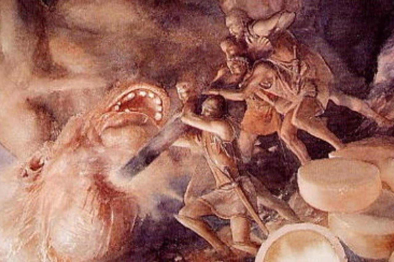 Polyphem wird fälschlicherweise als Bösewicht verstanden, weil er dem antiken griechischen Helden Odysseus auf der Insel Sizilien begegnete und mit ihm kämpfte. Wahrscheinlich war Polyphem schockiert über die Rücksichtslosigkeit dieser Eindringlinge, weshalb er einige von ihnen tötete und fraß. Er dachte vielleicht, diese Eindringlinge seien Räuber, die sein Territorium erobern wollten. Seine erste Reaktion war also, sich zu schützen; er versiegelte den Eingang seiner Höhle mit einem riesigen Stein und packte sofort zwei Männer des Odysseus und fraß sie.