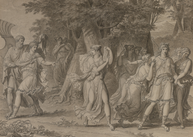 Er schlug jedoch vor, dass Telemachos Menelaos aufsuchen sollte, einen Freund des Odysseus, der nach Ägypten gereist war. So schickt Nestor einen seiner Söhne, um den jungen Telemachos zu Menelaos zu geleiten, und sie machen sich auf den Weg, während Athena die Obhut über ihr Schiff übernimmt.
