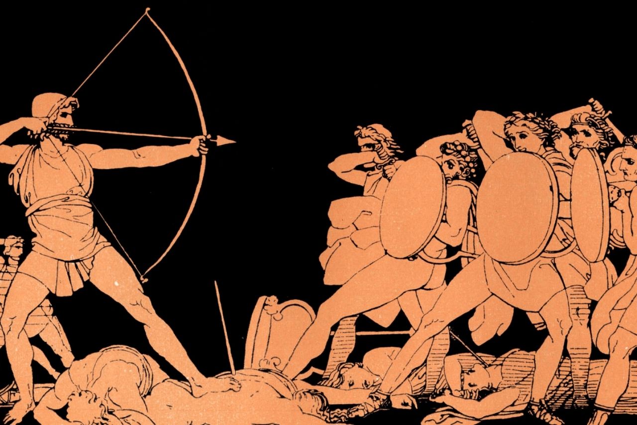 - Odysseus gewinnt den Wettkampf um die Hand seiner Frau und richtet sofort den Bogen auf die Freier, wobei er seine Identität offenbart.
