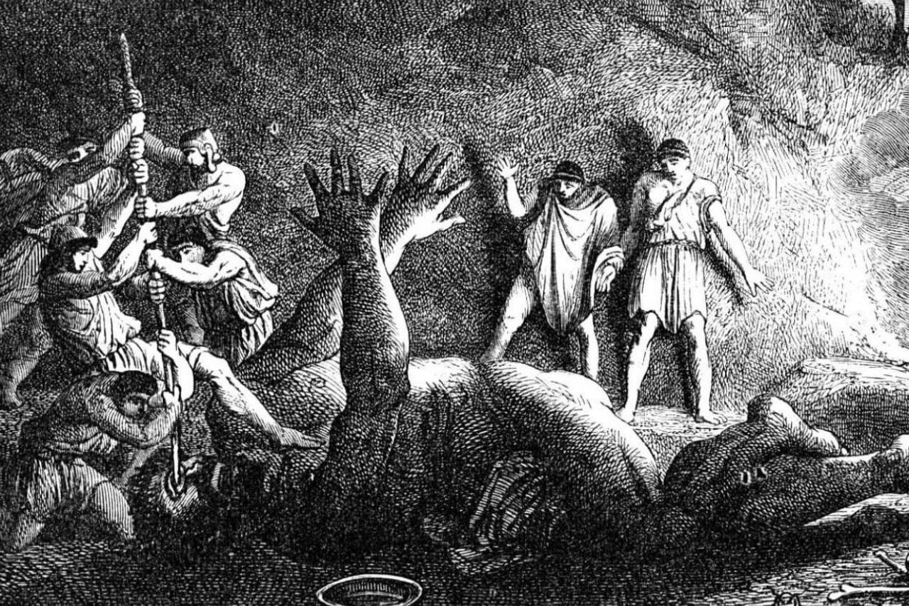 Es begann, als Odysseus und seine Mannschaft auf der Insel der Zyklopen umherirrten, in der Hoffnung, Nahrung zu finden. Schließlich gelangten sie jedoch in Polyphemus’ Höhle und beschlossen, im Inneren auf den Besitzer zu warten.